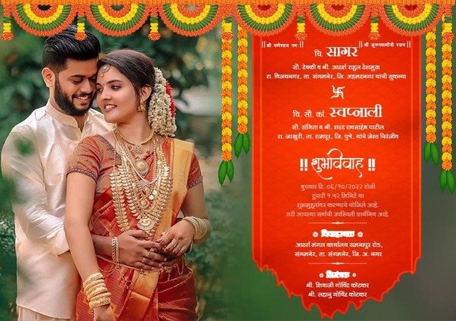 Variety of Templates: Choose from an array of Marathi wedding invitation designs tailored to suit traditional and contemporary tastes.