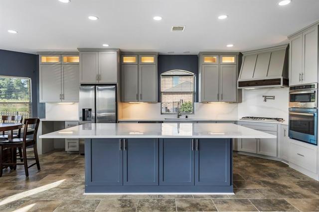There's seating for eight around the island.