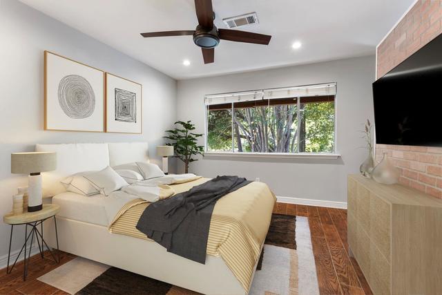 This newly upgraded to a 2-bedroom townhome on the Tournament Players Golf Course in Grogan's Mill offers modern style and striking golf course views! Enter through a gated courtyard into an updated interior featuring sleek wood-look flooring (no carpet!), recessed lighting and quality finishes throughout. The staircase is framed by a chic wrought iron handrail and a pendant light fixture. The main floor includes a spacious family room, a well-appointed kitchen with granite countertops, stainless steel appliances, and a breakfast peninsula, as well as a dining area that opens to the back patio. Upstairs, find the owner's suite with a study nook, walk-in closet, and en-suite bath, along with a second bedroom overlooking the golf course. The fenced backyard includes a patio and green space?perfect for relaxation or entertaining. With quick access to I-45, The Woodlands Town Center, The Waterway, The Pavilion, and Market Street, this home is ideally located for convenience and enjoyment.