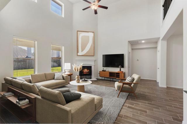 Welcome to this beautiful home in the highly sought-after Jacobs Reserve in Conroe, TX, zoned to top-rated Galatas Elementary and Conroe ISD. This stunning home offers two bedrooms downstairs, including the primary suite and a guest room. A home office on the first floor could easily serve as a fifth bedroom. The main living spaces feature soaring ceilings, a formal dining room, and a cozy family room with a gas log fireplace. The gourmet kitchen features granite countertops, a gas cooktop, convection oven, and a walk-in pantry. Upstairs, you'll find a den, two secondary bedrooms, a shared bathroom, and a fantastic media room. The expansive backyard with a covered patio is perfect for outdoor living. Community amenities include a pool, splash pad, playground, dog park, and walking trails. With easy access to I-45 via FM1488, this home is minutes from The Woodlands' major hospitals, businesses, and amenities. Schedule your showing today!
