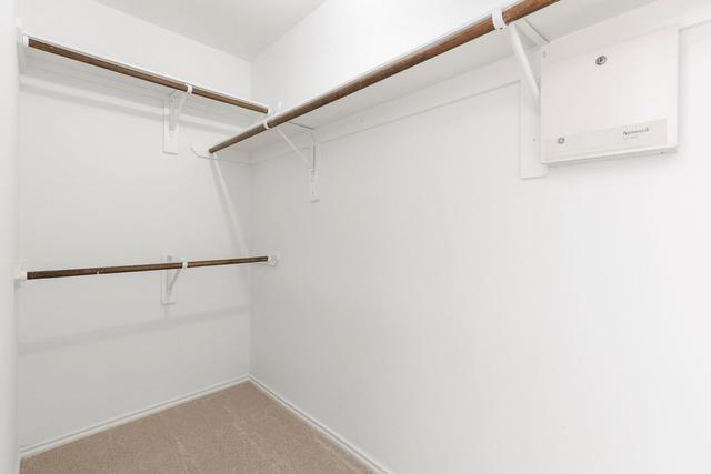 Spacious primary walk-in closet.