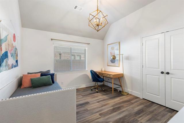 Another secondary bedroom. Notice the modern light fixture. This bedroom connects directly to the secondary Hollywood bathroom.