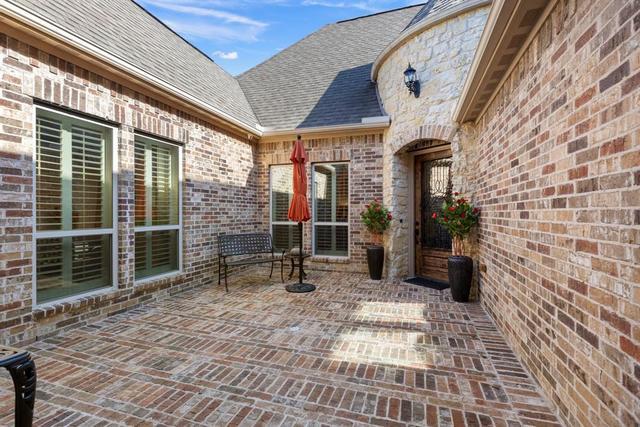 Stunning Darling patio home located on a private cul-de-sac next to a greenbelt in the heart of Woodforest, TX. The European-inspired design features lush, exquisitely landscaped grounds, a gated front courtyard, and a striking turret entry. Inside, the light-filled open floor plan boasts rich hardwood floors, exposed wood beams, and a stunning family room with a corner stacked stone fireplace. The gourmet kitchen showcases a single-slab granite island, a 6-burner gas cooktop, double ovens, custom slide-out drawers, and a walk-in pantry. The private primary suite features tray ceilings, a luxurious en suite bath, and custom closets with direct utility room access. A casita with its own entrance and en suite bath ensures ultimate comfort for your guests. Exceptional outdoor living spaces include a covered back patio with a summer kitchen, a pergola and a stone fire pit. 2024 upgrades include a whole house Generac generator and surge protector, new AC and a new LG refrigerator.